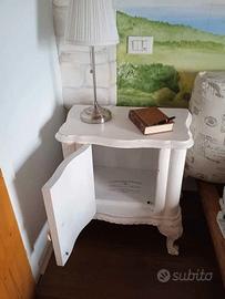Elegante comodino chippendale in stile shabby chic colore bianco anticato Dettaglio Paris sul pomello a forma di cuore. - Cm 63x 38 h cm 70
