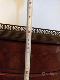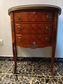 comodino in radica di noce con decoro molto curato e tre cassetti. 70 di altezza 60 di larghezza e 38 di profondità