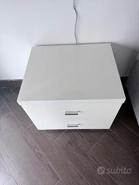 Vendo comodino bianco lucido con 2 cassetti, design moderno e minimale. Struttura solida, cassetti capienti e scorrevoli, maniglie in metallo. Condizioni molto buone, pulito e subito utilizzabile. Ideale per camera da letto, casa vacanze o arredamento minimal. • Colore: bianco lucido • 2 cassetti capienti • Maniglie metalliche • Struttura robusta • Design moderno e pulito Ritiro a mano. Prezzo trattabile per ritiro veloce.