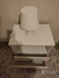 Comodino laccato bianco, dotato di due cassetti, in condizioni più che buone, riportante le seguenti misure: L. 49 cm; P. 34 cm; H. 63 cm
