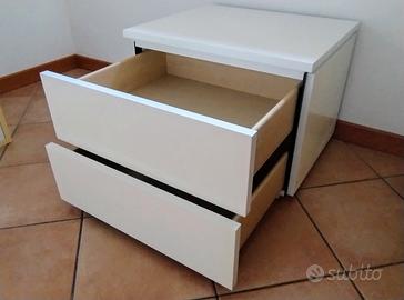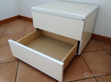 Comodino bianco laccato in stile moderno, con 2 cassetti spaziosi e scorrevoli.
