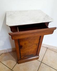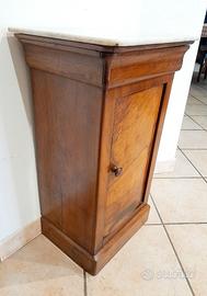 Comodino Luigi Filippo in noce e radica di noce con cassetto e antina,