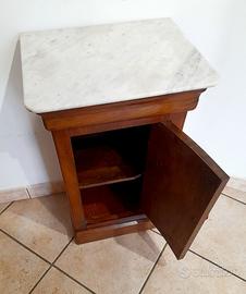 piano di marmo di Carrara, pomelli in legno e ripiano interno.