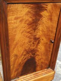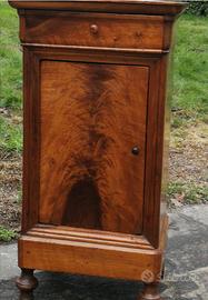 Comodino "cappuccino"Luigi Filippo seconda meta' ottocento in noce e lastronato in piuma di noce .Alta Qualita' per materiali e costruzione. Misure: 43xp34xH80 cm.Restaurato ,verniciato a gommalacca a stoppino e pronto per essere collocato .