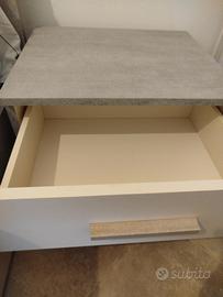 Comodino 2 cassetti effetto beton gray, bianco opaco.