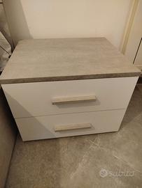 Vendo comodino nuovo con due ampi cassetti, perfetto per arredare con eleganza e funzionalità la tua camera da letto. Design moderno e lineare, ideale per qualsiasi tipo di arredamento.