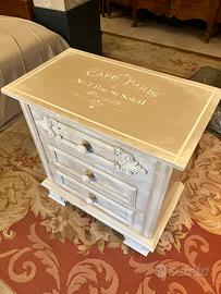 Splendido comodino mobiletto decorato color tortora e bianco. Struttura perfetta 3 cassetti come da foto