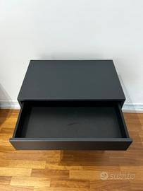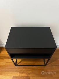 Vendo comodino nero dal design moderno e minimalista. •Struttura in metallo verniciato nero opaco •Ampio cassetto frontale •Ripiano a giorno sotto il cassetto •Solido e stabile, ideale per camera da letto o soggiorno
