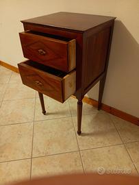 Comodino 2 cassetti in noce intagliato H 78 P 38 L 44
