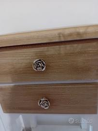 Altezza : 68 cm Larghezza : 37 cm Profondità: 26 cm Comodino stile shabby, con 2 cassetti. In perfette condizioni. 20 euro non trattabile.