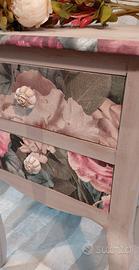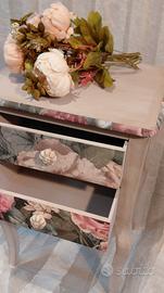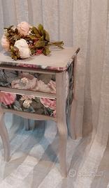 Immagina di svegliarti ogni mattina in un'oasi di tranquillità e bellezza, avvolto dal profumo dei fiori e dalla luce soffusa. Con il nostro splendido comodino decorato con fiori di rosa e peonie, questo sogno può diventare realtà! Questo non è un semplice mobile, ma un'opera d'arte funzionale che trasformerà la tua camera da letto in un rifugio accogliente e raffinato. I colori delicati e le fantasie floreali evoca la freschezza della primavera, donando un tocco di gioia e romanticismo al tuo spazio. Questo comodino è un pezzo unico, decorato a mano con amore e cura per i dettagli. La combinazione di rose rosa e peonie creano un'armonia visiva irresistibile. Dotato di due pratici cassetti, questo comodino ti offre tutto lo spazio necessario per riporre i tuoi oggetti personali. Libri, lampade, occhiali da vista: tutto avrà il suo posto! Perfetto per una camera da letto romantica, una cameretta per bambini o anche un angolo lettura accogliente. Non perdere l'opportunità di avere questo splendido comodino nella tua casa! 📏 Dimensioni: 32x40cm altezza 70cm