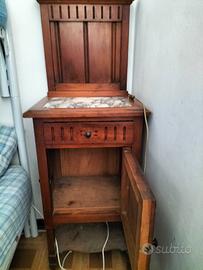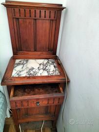 Comodino stile Liberty con piano di marmo e alzata
