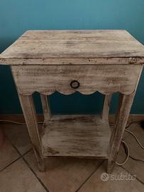 Vendo comodino antichizzato, in legno, stile shabby. Misure 50 cm x 30 cm x 60 cm di altezza. Prezzo 70 euro. Ritiro a carico dell’acquirente. Non effettuo spedizioni.
