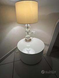 Comodino -Tavolono contenitore bianco laccato diam.50 cm alt.30 cm . Ideale da usate come comodino o tavolino soggiorno .