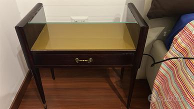 Elegante comodino/tavolino in legno massello finitura mogano scuro, stile classico vintage.