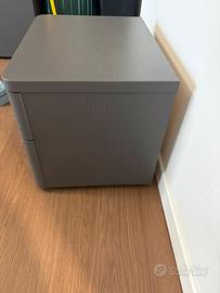 Comodino della Tomasella modello Dolcevita 2 cassetti Colore: Grigio Lava L. 55.4 cm H. 43.8 cm P. 42.4 cm Il comodino presenta alcuni punti in cui il colore è un po’ rovinato (vedi foto)