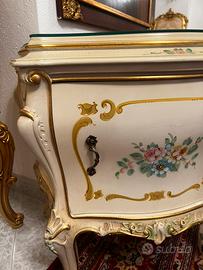 Comodino veneziano silic, con oiano in vetro, sportello. Misure larghezza 110 cm, altezza 60 cm, profodinta 40 cm.