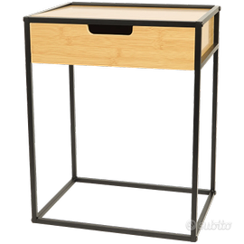 comodino color beige legno di metallo con cassetto. Misure: 40x30x50 cm