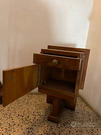 Vendo elegante comodino d’epoca, probabilmente degli anni ’40, in legno impiallacciato con venature a radica.