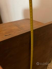 Linee geometriche tipiche dello stile Art Déco, con maniglie tonde in ottone e base centrale.