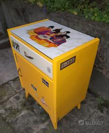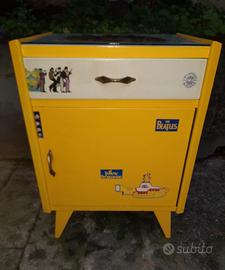 comodino vintage trasformato stile beatles yellow submarine. Presenta piccole crepe poco visibili sullo sportello.