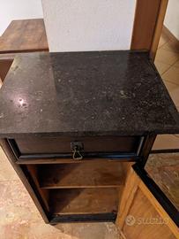 comodino antico con top in marmo, presumibilmente d'epoca tra le due guerre, in condizioni molto buone considerata l'eta. Dimensioni: comodino 38x34x h80, lastra marmo top45x36