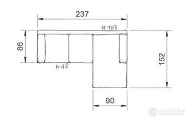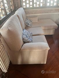 Colore chiaro, comodissimo anche per riposare, cuscini sfoderabili, struttura con piedini altezza 10 cm.