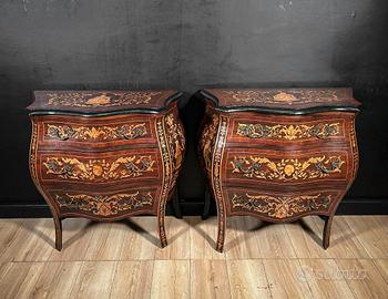 Coppia di Comoncini Antichi Intarsiati di Gusto Luigi XV