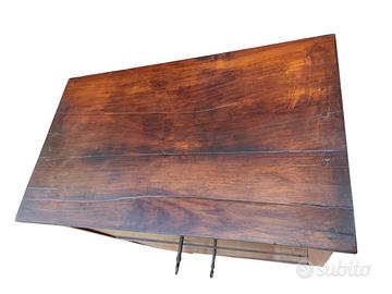 L’intarsio sobrio e raffinato valorizza la calda tonalità del ciliegio, mentre il piede piramidale, tipico dell’epoca, ne sottolinea provenienza e rigore formale.