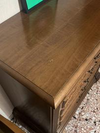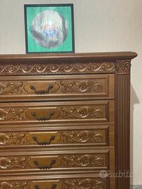 Comò antico in legno Vendo comò settimanale (settimino) antico in legno pieno, in ottime condizioni generali. Mobile elegante e solido, con ampi cassetti e linee classiche. Presenta solo un piccolo foro sul ripiano principale (come visibile in foto), che non ne compromette l’estetica né la funzionalità. 📏 Dimensioni: •Larghezza: 103 cm •Profondità: 53,5 cm •Altezza: 110 cm 🔸 Della stessa camera sono disponibili anche altri mobili abbinati: •Comodini •Armadio •Letto •Sedie Possibilità di acquisto singolo o in blocco a prezzo vantaggioso. 🚚 Ritiro a carico dell’acquirente 🔑 Parole chiave utili: comò antico, settimino legno massello, comò vintage, cassettiera d’epoca, mobile camera da letto classico, arredo antico, mobili legno pieno, camera classica.