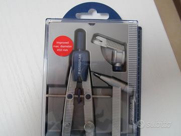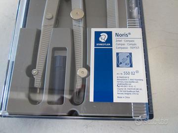 Compasso scuola Steadtler Noris 550 02 nuovo con astuccio sigillato. Dotato di accessori innesto universale, tubetto di mine e prolunga per disegnare cerchi con un diametro massimo di circa 450 mm.