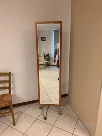Tavolino per salotto in vetro acidato e finiture in legno di ciliegio. Dimensioni: cm 130 x 70 H. 40. Prezzo di vendita: €.80,00 Appendiabito in ferro battuto, altezza cm 200 Prezzo di vendita: €.80,00 Specchio a terra con base in metallo Dimensioni: L. cm 45 - H. cm 180 Prezzo di vendita: €.110,00