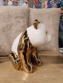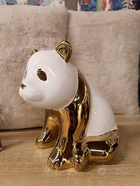 Simpatico complemento d'arredo a forma di panda, fin. lucide bianco e oro.