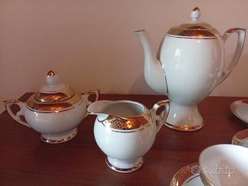 In vendita splendido completo da tè vintage marca Bavaria con bordi dorati, con 5 tazze, molto ben tenuto, euro 100,00 trattabili, zona Pordenone.