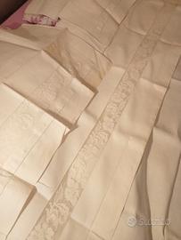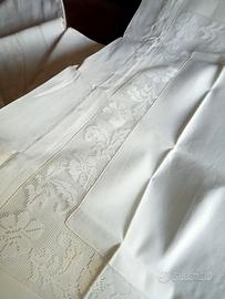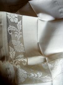 Completo in puro lino "di una volta". Lenzuolo superiore con 2 Federe cm 85 ×52.spendido ricamo sulle federe e sulla parte superiore del lenzuolo. Mai utilizzato.qualche segno di ingiallimento su una federa.(Possibile rimuoverlo con un lavaggio adeguato) Misure:270×276 su Roma anche consegna diretta zona piazzale clodio.