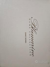 Set 4 pezzi formato da: 1 lenzuolo sopra 250x290 cm, 1 lenzuolo sotto con angoli 180x200 cm, 2 federe a 3 volani 50x80 cm.