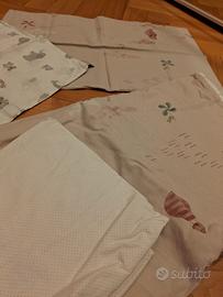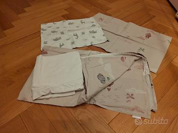 Vendo completo lenzuola e copripiumino Gabel composto da: un lenzuolo sotto con angoli, un copripiumino con un lato che richiama il lenzuolo sotto e l'altro che richiama la federa.