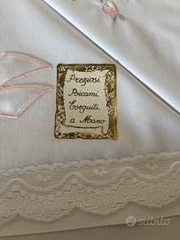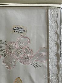 Completo lenzuola matrimoniale ricamato a mano