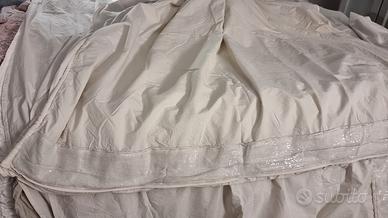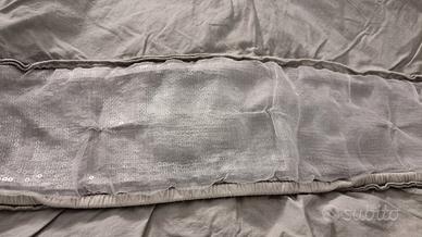 * lenzuolo 270x290 grigio perla con decoro organza e paillettes in tono.