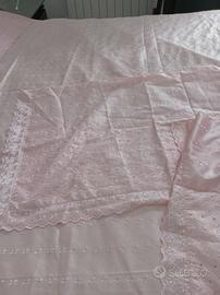 Completo letto matrimoniale composto da lenzuolo sotto più lenzuolo sopra con due federe più copriletto in pizzo San Carlo usato una sola volta per un matrimonio