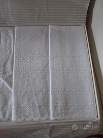 lenzuola matrimoniali completo di tutto ricamate bianco nella confezione originale nuova mai aperta