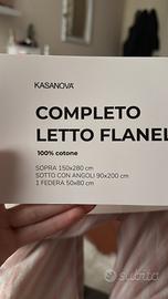 Vendo completo letto in flanella, 100% cotone, nuovo e mai utilizzato.