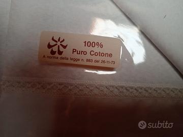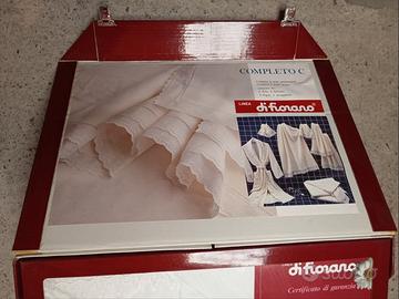 Completo lenzuola matrimoniale (4 pezzi). Completo 6 pezzi spugna: 1 telo, 2 salviette, 2 ospiti, 1 accappatoio.