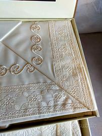 Coordinato matrimoniale 5 pz. : 2 Lenzuoli 2 Federe e copriletto. Cotone ricamato con organce. Nuovo nella sua confezione originale. Il prezzo (trattabile) è giustificato dall' ottima qualità del prodotto. Produzione Pontevecchio. Spedizione con TuttoSubito.it