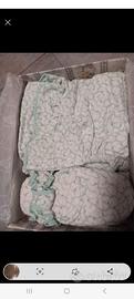 composto da fascia per capelli, pareo e pantofole. colore bianco e verde. marca Gemme completamente in cotone