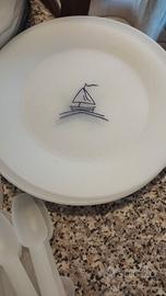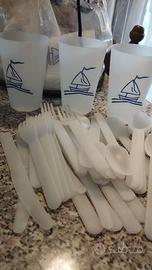 Completo per pic-nic composto da : 12 piatti, 12 bicchieri, 12 forchette, 12 cucchiai, 12 coltelli con sacco contenitore nuovo