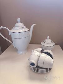 Servizio completo piatti, bicchieri e tazze in porcellana "Menage" made in Bavaria pari al nuovo (no scatola originale) bordo colore argento. Composizione: n. 40 piatti + zuppiera; n. 48 bicchieri; n. 12 tazzine, caffettiera e zuccheriera. N.B. solo ritiro no spedizione. Prezzo leggermente trattabile.