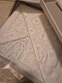 Il set comprende copriletto, lenzuola sopra lenzuolo sotto vestaglia, taglia quarantotto. Con scatola