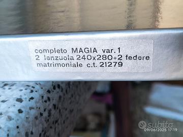 Vendo completo lenzuola matrimoniale Zucchi, modello MAGIA var. 1, NUOVO e MAI USATO, nella sua confezione originale. Un tocco di eleganza in più grazie alle federe a tre volani!