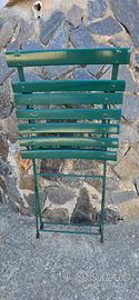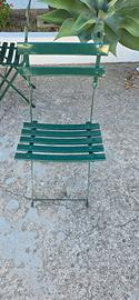 Tavolino da giardino colore verde usato ma ancora in ottime condizioni completo di sedie chiudibili colore verde, si chiude anche il tavolo perfetto per piccoli ambienti marca emu misure L-90xP-60xH-72. Ritiro sul posto